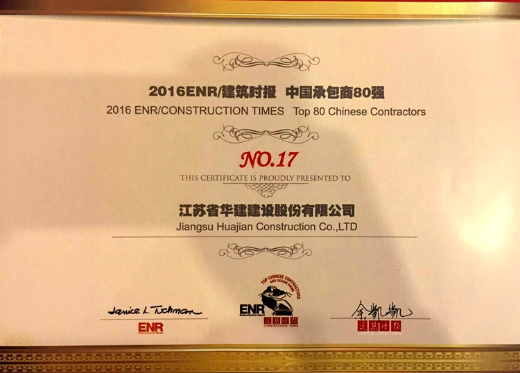 11月25日,由美國《工程新聞記錄》(ENR)和中國《建筑時報》兩家權威媒體共同主辦的 “中國承包商80強和工程設計企業60強”頒獎典禮在福建福州隆重舉行。江蘇華建再次成功入選中國承包商80強榜單,位列第17。至此,江蘇華建自2004年活動開展以來排名持續前移,并已連續13年榜上有名。